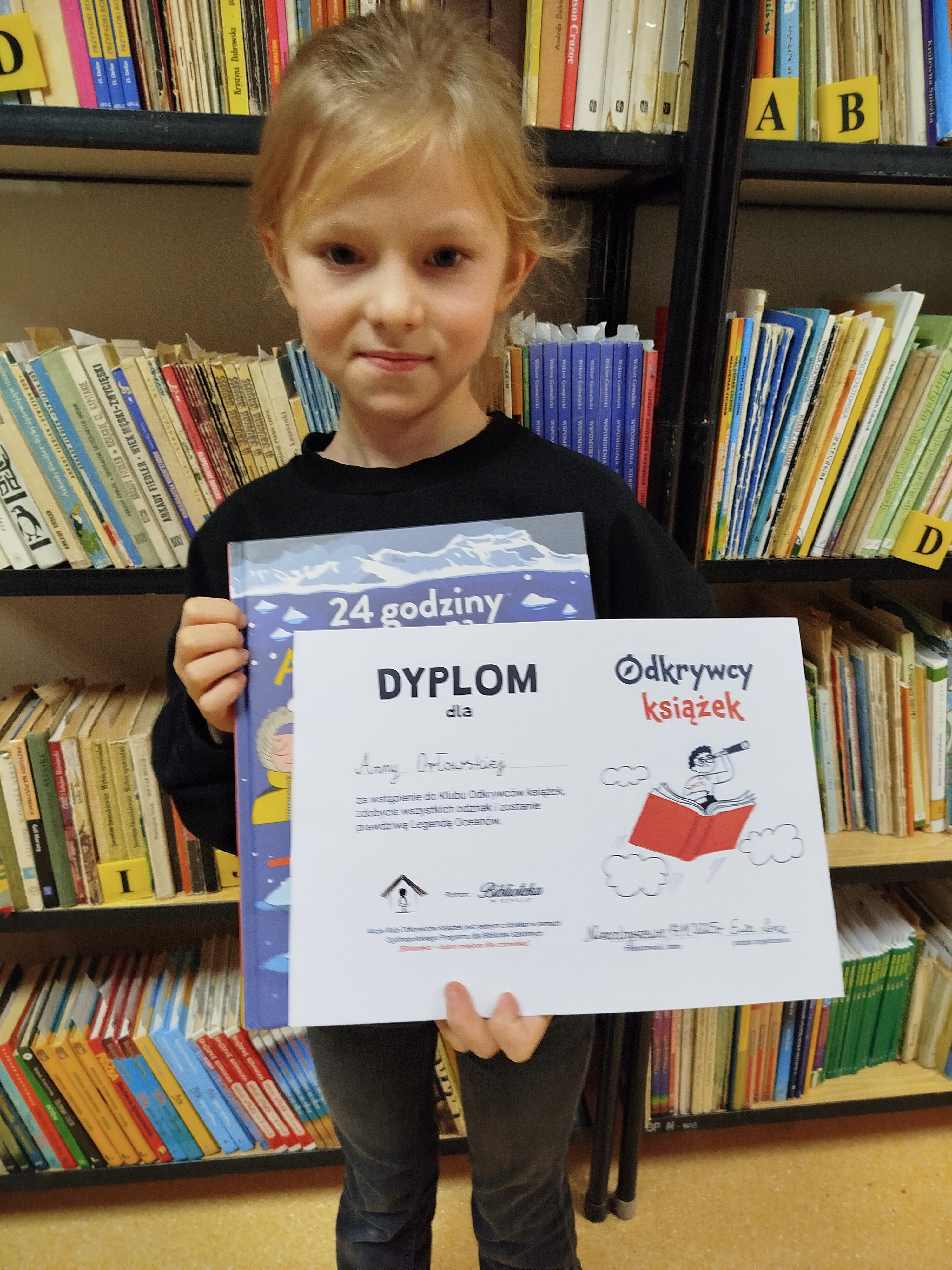 W akcji wzięło udział 25 uczniów z klas 1, 2a, 2b, 3 oraz 6. Zadaniem uczestników było przeczytanie trzech książek oraz zrealizowanie wyzwania czytelniczego. Czytelniczą przygodę z sukcesem ukończyło 15 uczniów z klas 2a, 3, 6, którzy zdobyli zaszczytny tytuł „Odkrywcy Książek”. Odkrywcy otrzymali dyplomy, nagrody oraz drobne upominki.