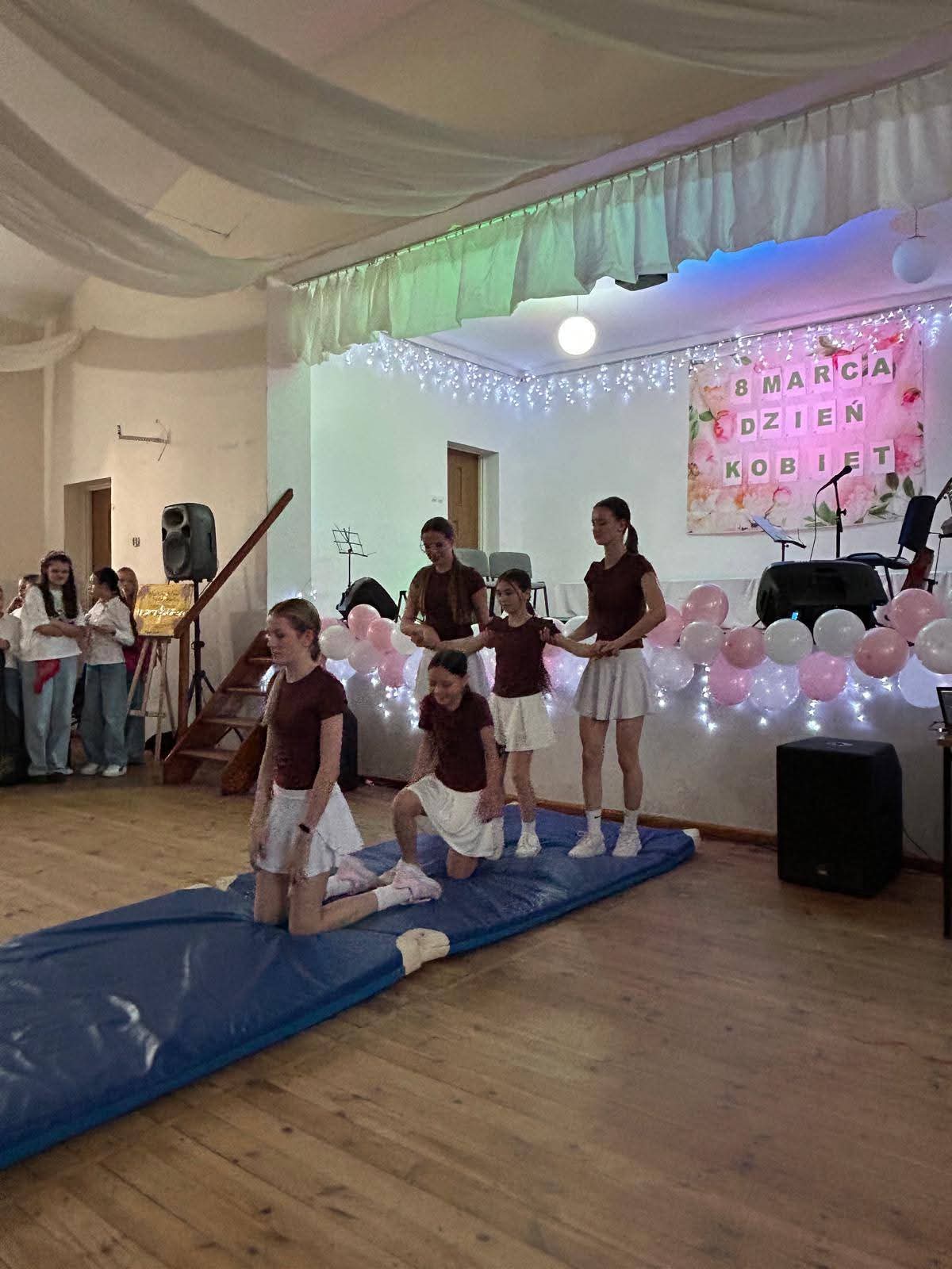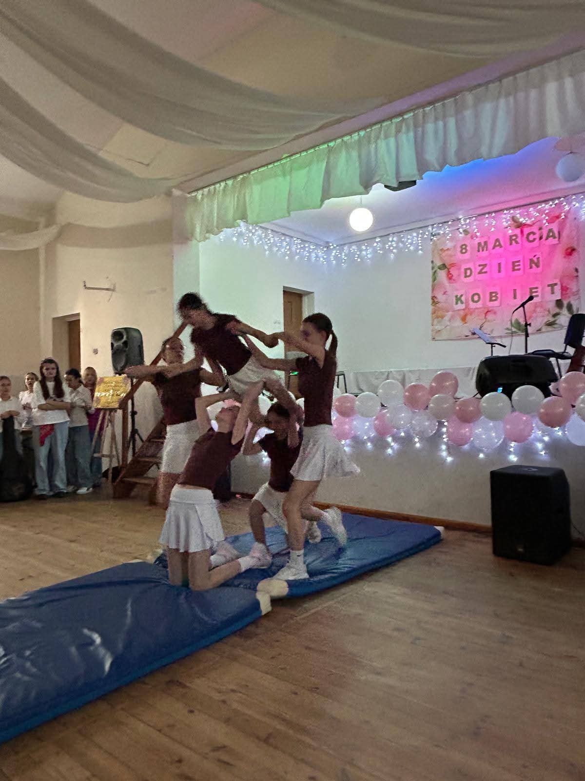 8 marca dziewczynki z klasy V-VIII naszej szkoły przygotowały i zaprezentowały piękny układ gimnastyczny z okazji Dnia Kobiet.