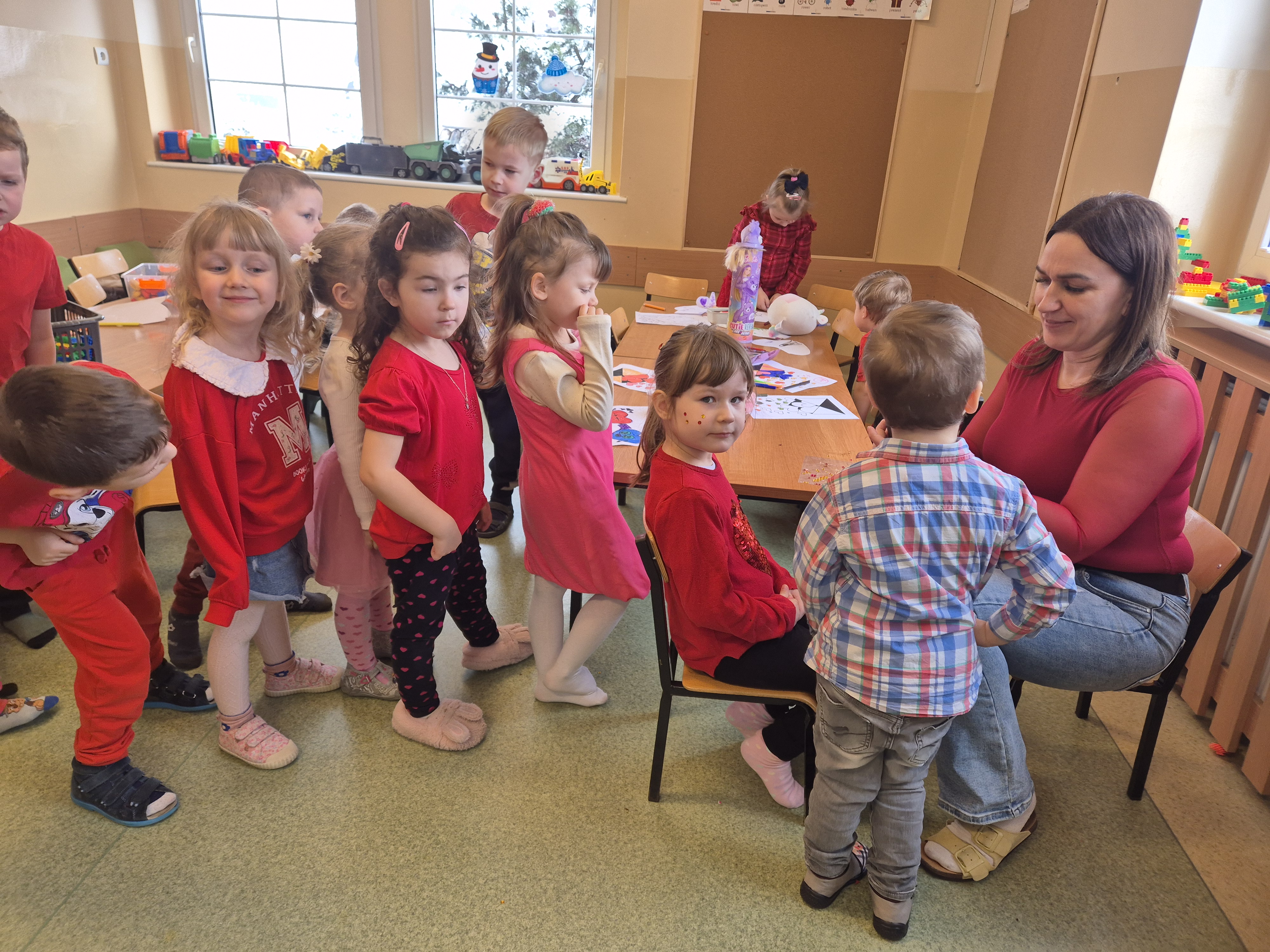 Dzień 13 lutego w naszym przedszkolu w Niezabyszewie upłynął pod znakiem przyjaźni, radości i... niezliczonej ilości czerwonych serduszek! Od samego rana w salach panowała wyjątkowa, pełna ciepła atmosfera, a uśmiechy nie schodziły z twarzy naszych podopiecznych.